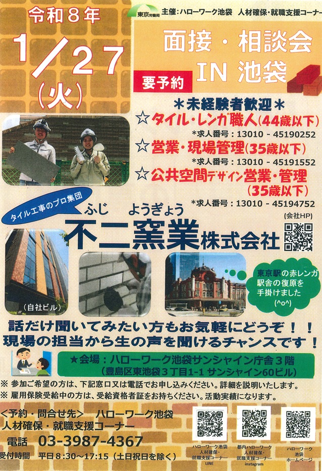 INFO2026.02.02 2026年1月27日 ハローワーク池袋と連携して、個別面接・相談会を行いました。 ハローワーク池袋 人材確保・就職支援コーナーと連携して個別面接・相談会を開催しました。 前へ お知らせ一覧へ>